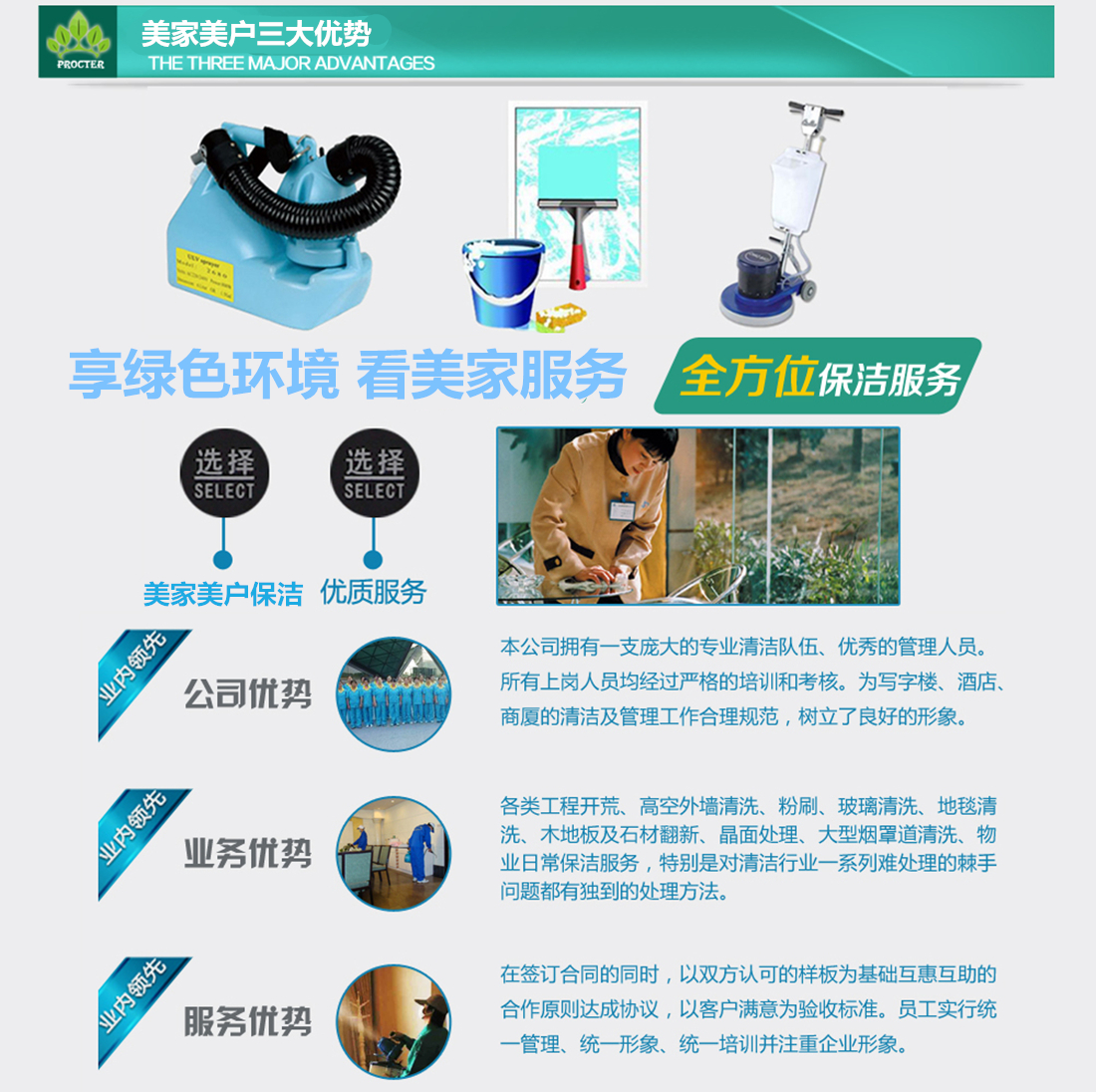 綿陽市美家美戶家政有限公司成立于2004年,是一家專業(yè)從事家庭、企事業(yè)單位、賓館、酒店等保潔服務(wù)的大型服務(wù)公司,公司至今成立十一年來現(xiàn)有員工105名,管理人員16名,場(chǎng)地500平米。公司現(xiàn)網(wǎng)點(diǎn)有開元店、高新店、高水店、園藝店、三臺(tái)公司、江油公司、遂寧公司等多個(gè)服務(wù)網(wǎng)點(diǎn)。 公司自成立以來,一直秉承“謀利于耕者,謀福于食者”的宗旨,以“服務(wù)全川,***業(yè)萬人”為目標(biāo),堅(jiān)持“做一家客戶,樹一個(gè)口碑;做一個(gè)行業(yè),樹一個(gè)品牌”的服務(wù)理念,發(fā)揚(yáng)……